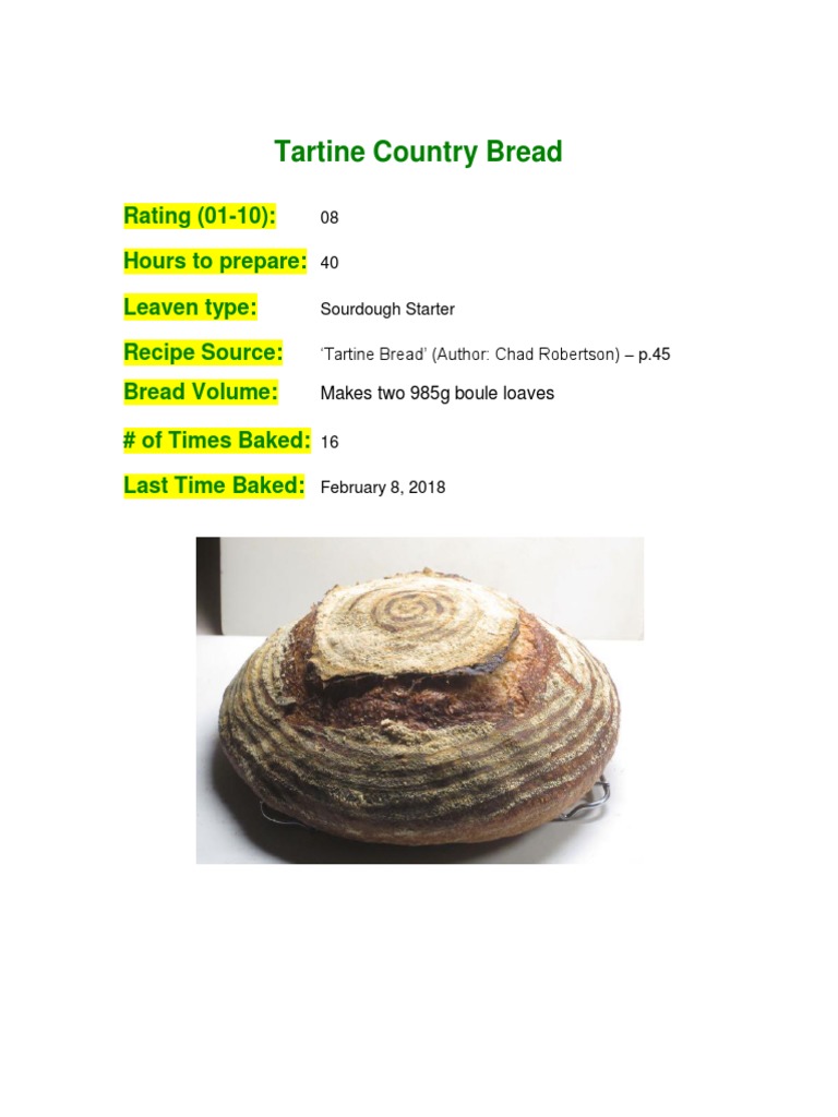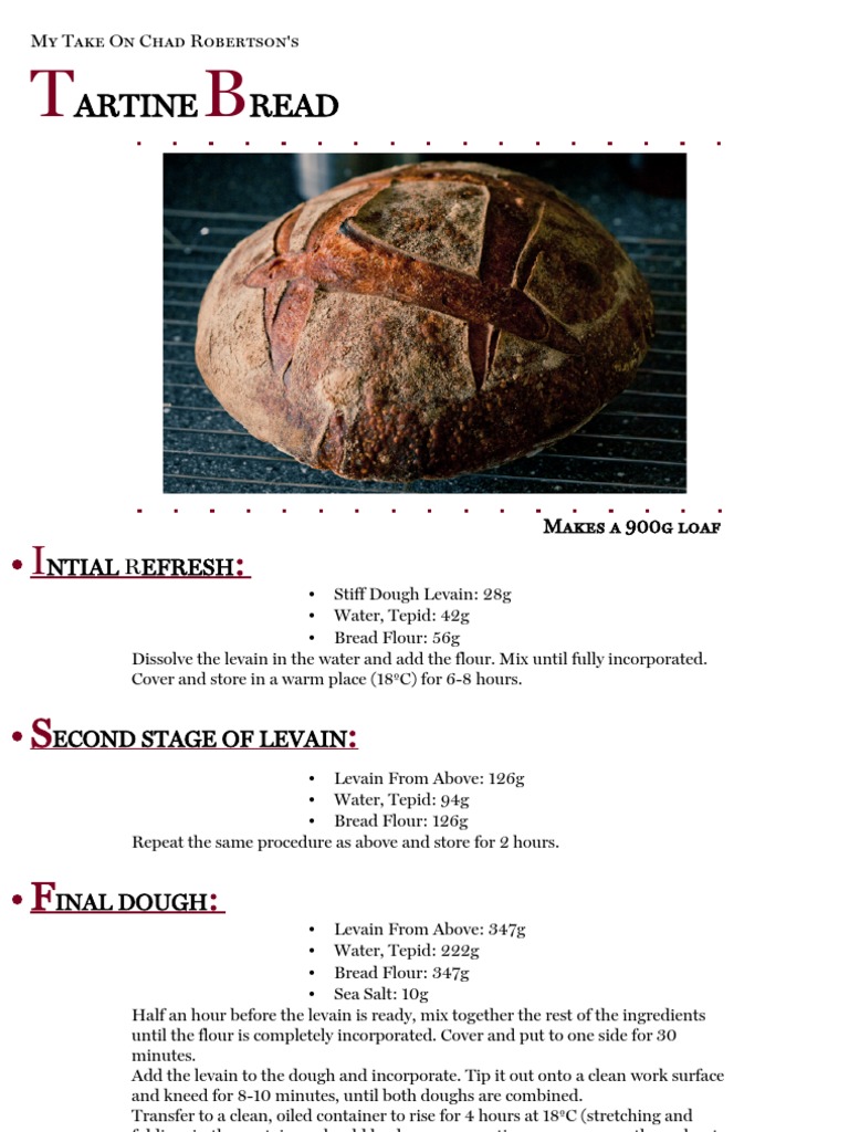 Tartine Bread Pdf Chad Robertson S Tartine Country Bread Ingredients And Equipment For The Starter White Bread Flour 1 135 Grams Whole Wheat Flour Course Hero